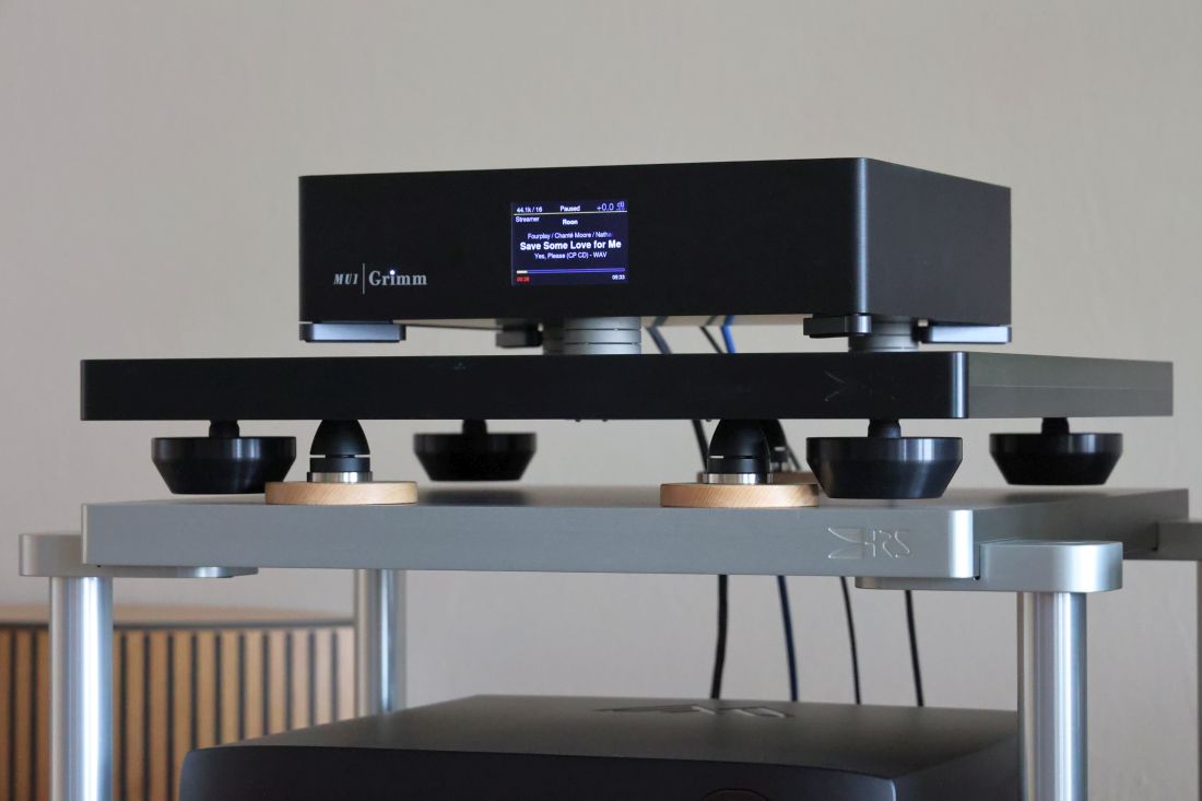 When using Roon, I prefer the Grimm MU1 for its crisper and leaner balance, which complements Roon’s thicker and more saturated sound well. At 4.5 kg, the Grimm MU1 is below the recommended minimum weight for the E1 Base’s footers. Nevertheless, because I wanted to perform additional tests with the E1 Base and a range of other couplers to hear how they affect the Grimm, I went ahead and tried it anyway.