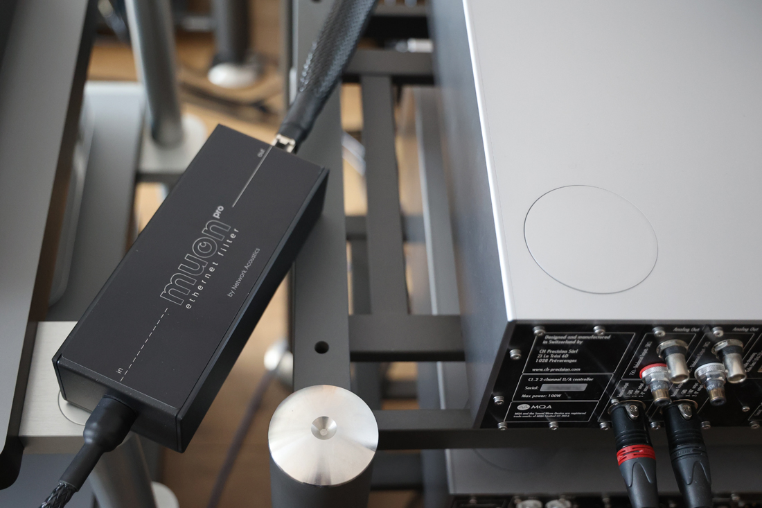 Next, I added the muon Pro Streaming Cable between the muon Pro Ethernet Filter. With this, the sound becomes even smoother and more liquid, while eliminating any trace of hardness or edge. Meanwhile, the cable maintains body and tonal saturation, offering a great balance between relaxed flow and solidity.