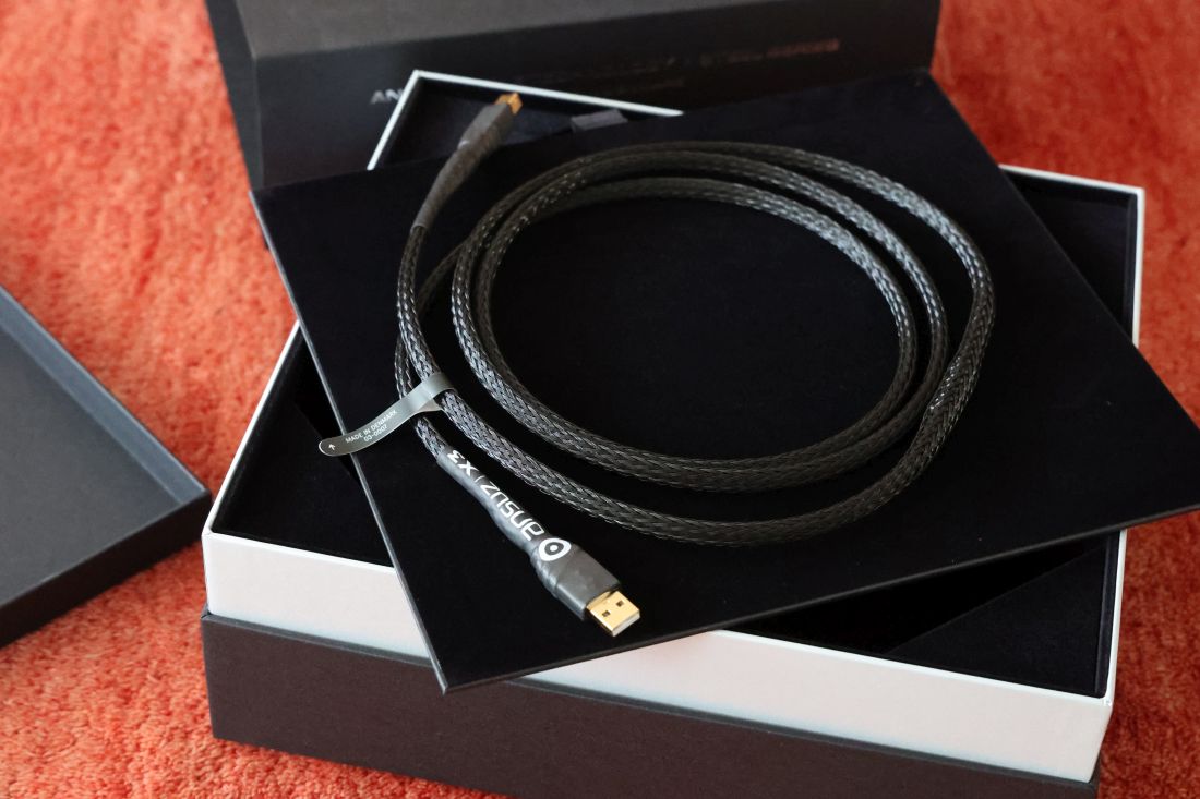 Starting with the Ansuz A3 USB cable, fresh out of the box, I was pleasantly surprised by its crisp, pure, well-focused, and lively sound. Not all digital cables change much over time, but some do. So, just in case, I left the cable playing music continuously for 5 days while leaving the X3 cable untouched. If the A3 changed over time, I would easily hear the difference compared to the other cable. Sure enough, when I listened to the two cables again after a week, the A3 had become slightly smoother and a little more liquid, while retaining all the qualities I liked.