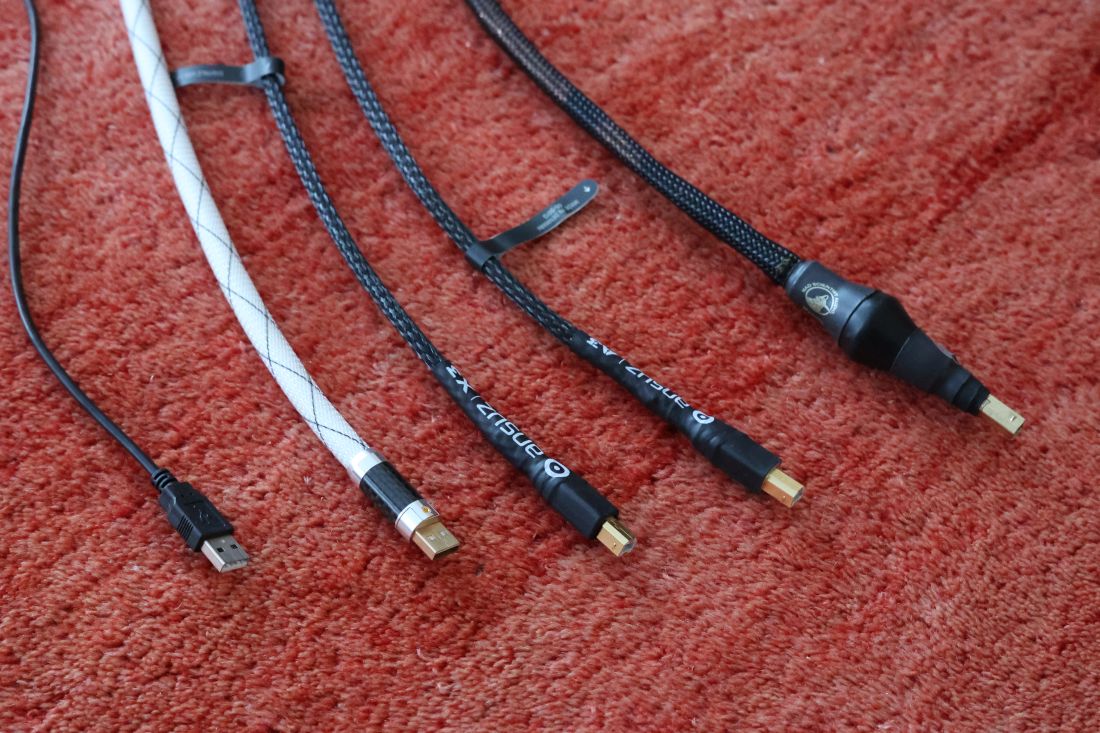 From left to right: standard “freebie” USB cable, Vermouth Reference, Ansuz X3, Ansuz A3, and Mad Scientist Prime.